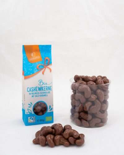 - Bio Cashews in Vollmilch-Schokolade mit Salz-Karamell