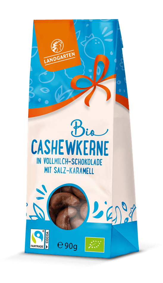 Entdecke "Landgarten Bio Cashews in Salz-Karamell Schokolade"